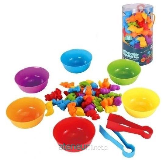 Gra edukacyjna Montessori, zwierzątka x 36 rozpoznawanie kolorów i kształtów. W zestawie kolorowe misie, szczypce, kolorowe miseczki do segregowania.