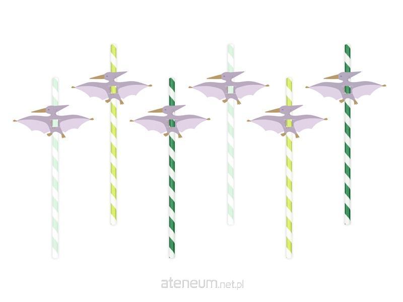 Słomki z nakładkami Pterodaktyl wykonane z papieru, mix kolorów, wymiary słomki ok. 19.5 cm wymiary nakładek ok. 9.5 x 4 cm.(1 op. / 6 szt.)