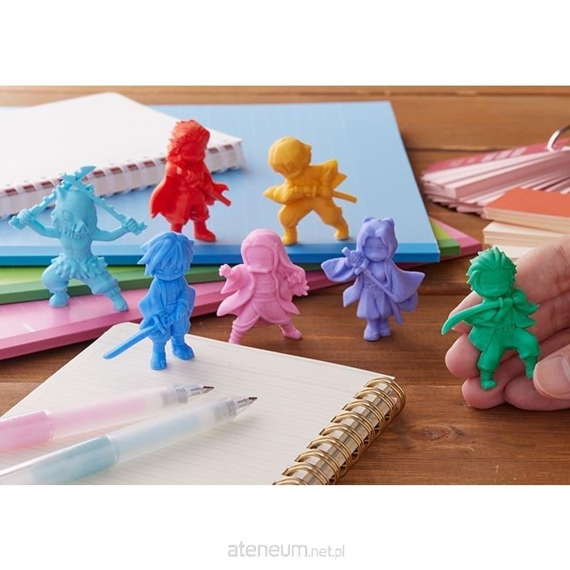 Na podstawie najpopularniejszej serii mangi w Japonii, "Kimetsu no Yaiba", napisanej i zilustrowanej przez Koyoharu Gotouge. Kiedy rodzina zostaje zaatakowana przez demony, przeżywa tylko dwoje członków - Tanjiro i jego siostra Nezuko, która powoli zamienia się w demona. Tanjiro postanawia zostać pogromcą demonów, aby pomścić swoją rodzinę i uzdrowić siostrę. Wiek: 3+ 7 różnych modeli postaci Kyojuro Rengoku, Tanjiro, Giyu, Zenitsu, Inosuke, Nezuko, Shinobusu; 8 kolorów; Figurki zawierają również specjalne gumki świecące się w ciemności (luminescencyjne (tajne). Te jakościowe ekologiczne figurki - gumki do ścierania są robione ręcznie w Japonii. Zacznij budować swoją kolekcję już dziś! Gumka wykonana jest z miękkiej gumy wysokiej jakości; jest śliczna i funkcjonalna.