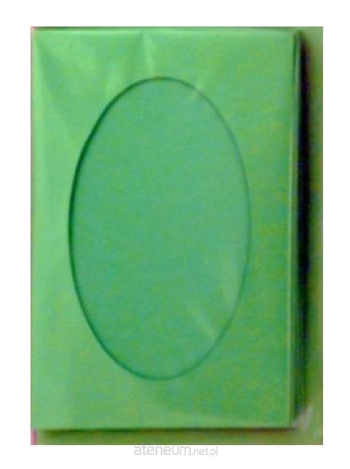 Zestaw 5 kopert C-6 + 5 kart passepartout z wycięciem owalnym w kolorze jasnozielonym. Karty passepartout wykonane z nieblaknącego, barwionego w masie, bristolu o gramaturze 220, produkcji niemieckiej. Koperty - z klejem - wykonane są z papieru kartonowego o gramaturze 130, w identycznym odcieniu jak karta passepartout.Cena za zestaw zawierający po 5 kart i kopert. Minimalna zamawiana ilość wynosi 1 zestaw. Kod towaru : PP 12051