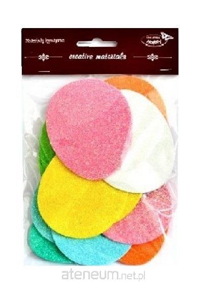 Jaja duże brokatowe miks 16 szt . Pakowane w opakowanie z eurozawieszką . Duży miks elementów z pianki. Zawiera elementy w wielu kolorach.