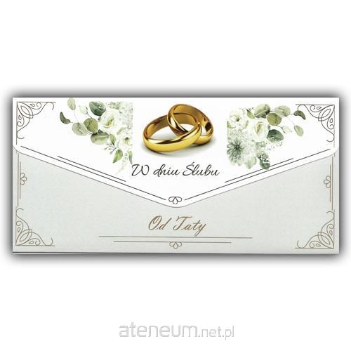 Po złożeniu format kartki DL, wyjątkowe złocenia, w środku życzenia i kieszonka na pieniądze. Dodatkowa koperta
