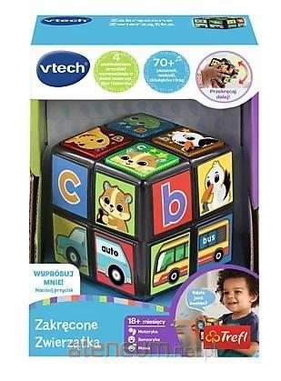 Czas na zabawę! Baw i ucz się z zabawką Zakręcone Zwierzątka od VTech®. Przekręć kostkę w lewo lub w prawo, aby usłyszeć zabawne zwroty do nauki. 4 podświetlane przyciski na górze kostki zachęcą dziecko do interakcji.