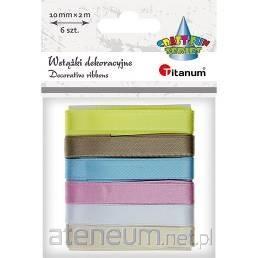 Wstążki satynowe 10 mm/2 m, 6 kolorów: żółty, brązowy, jasnoniebieski, różowy, biały, beżowy.