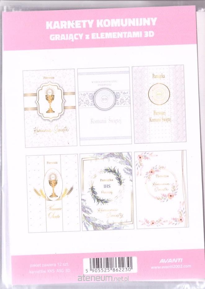 Karnety A5 z elementami 3D grające melodię "Pan Jezus już się zbliża". Opakowanie zbiorcze 12sztuk zawiera mix wzorów.