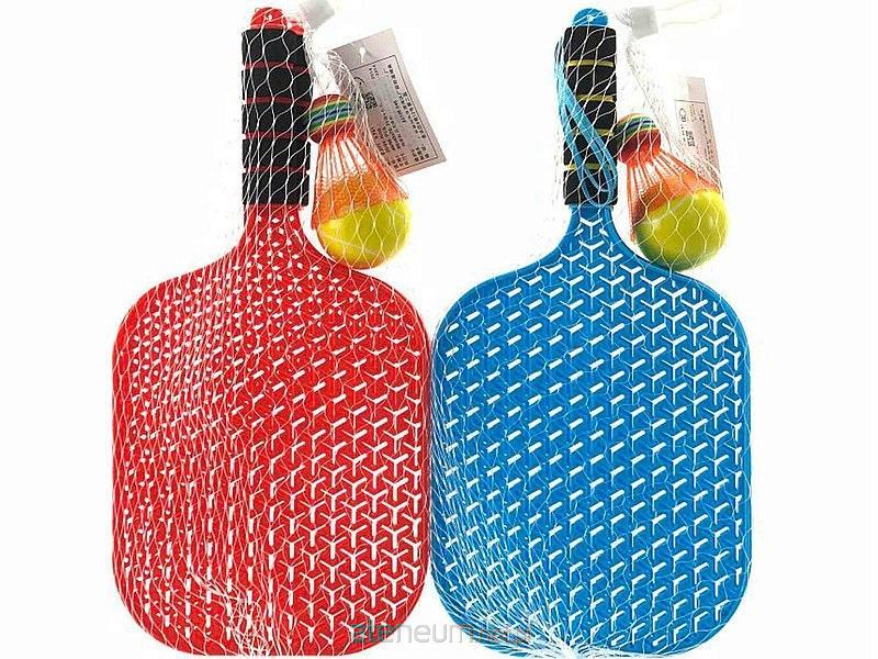 Zestaw dużych rakietek z lotką i piłką; 42x24cm, siatka