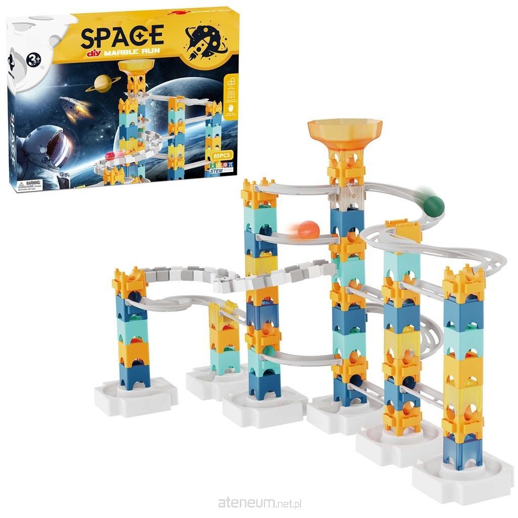 Tor z kuleczkami SPACE 85el. 41.5x7.3x30 Zestaw zawiera 85 elementów, które można składać i rozkładać, tworząc niesamowitą zjeżdżalnie dla kolorowych piłeczek. Dziecko może odtworzyć model ukazany na pudełku lub zaprojektować swój, niepowtarzalny tor .