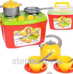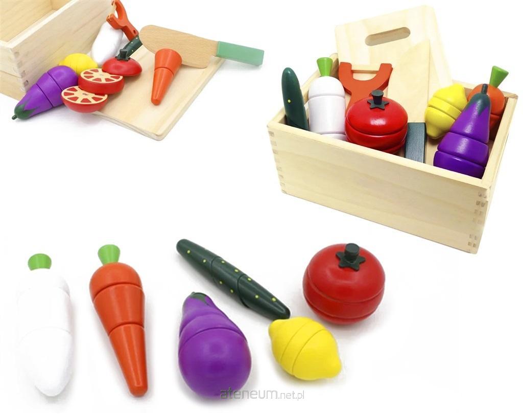 Drewniane, łączone magnesem warzywa do krojenia zapakowane w skrzynkę.
