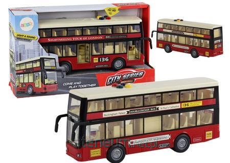 Autobus Piętrowy Miejski Światła Dźwięki Czerwony 1:16 Autobus jest utrzymany w czerwonym kolorze, co od razu przyciąga uwagę maluchów. Wyposażony jest w napęd frykcyjny, co oznacza, że dziecko może łatwo nadać mu ruch, pchając go po powierzchni. To nie tylko świetna zabawa, ale także rozwijanie zdolności motorycznych. Efekty świetlne i dźwiękowe dodają dodatkowego elementu atrakcyjności. Podczas poruszania się, autobus może emitować dźwięki silnika czy klaksonu, co wzbogaca doświadczenie sensoryczne dziecka. Świetlne migotanie może imitować działanie pojazdu. Otwierane drzwi stanowią dodatkową funkcję interaktywną, umożliwiającą dzieciom udawanie, że obsługują swój własny autobus. To doskonała okazja do rozwijania zdolności społecznych i kreatywności. Gumowe opony dodają zabawce realizmu i przyczepności do różnych powierzchni, co sprawia, że zabawa staje się bardziej realistyczna. Zabawka ta nie tylko dostarcza rozrywki, ale również rozwija umiejętności poznawcze, społeczne i motoryczne u najmłodszych. Autobus na baterię to z pewnością fascynujący pojazd, który zachęca do kreatywnej zabawy i wspiera rozwój dziecka. Wymiary pojazdu: 26 cm x 11 cm x 6 cm Wymiary opakowania: 33 cm x 18 cm x 10 cm Autobus zasilany jest trzema bateriami AG13, które są w zestawie. Zabawka przeznaczona jest dla dzieci powyżej 3 roku życia. Zestaw posiada certyfikat CE i jest zgodny z normą EN 71.