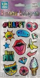 Naklejki holograficzne Happy, to idealna dekoracja pamiętników, albumów, zeszytów czy telefonów. W zestawie znajduje się około 10 szt kolorowych naklejek o różnych kształtach. Holograficzna powłoka z efektem tęczy zmienia ich kolory w zależności od kąta padania światła, dzięki temu naklejki są oryginalną, przyciągającą wzrok ozdobą. Naklejki wykonane zostały z wysokiej jakości materiałów, które są trwałe i odporne na zniszczenia