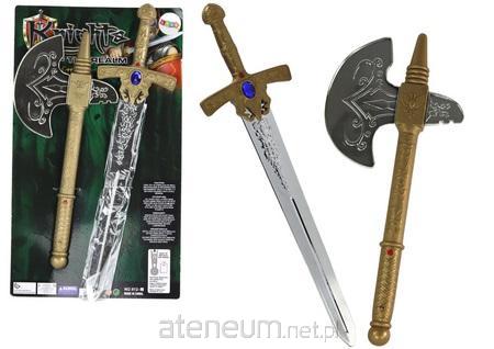 Miecz Topór Zestaw Rycerza Broń Rycerska Dla Dzieci Miecz i topór to nieodłączny element wyposażenia każdego odważnego rycerza czy walecznego wojownika! Te urocze zabawki nie tylko zapewniają godziny zabawy, ale także pobudzają wyobraźnię i rozwijają zdolności kreatywne dziecka. Topór, ozdobiony w kolorach złota i srebra, jest nie tylko atrakcyjny wizualnie, ale także wyposażony w efekty dźwiękowe, co dodaje dodatkowego realizmu i emocji do zabawy. Dzięki niemu dziecko może poczuć się jak prawdziwy wojownik, broniący zamku lub staczający walkę z zagrożeniem. Miecz, w kolorach brązu i srebra, jest równie imponujący i atrakcyjny dla małych miłośników przygód. Posiada efekty dźwiękowych, jego realistyczny wygląd i solidna konstrukcja sprawiają, że zabawa nim jest niezwykle ekscytująca i pełna emocji. Te zabawki nie tylko pobudzają wyobraźnię i rozwijają zdolności manualne dziecka, ale także uczą wartości takich jak odwaga, honor i sprawiedliwość. Dzięki nim każde dziecko może poczuć się jak bohater swojej ulubionej bajki lub legendy, stając do walki w obronie dobra i sprawiedliwości. Wymiary miecza: 53 cm x 14 cm x 3 cm Wymiary topora: 43 cm x 19 cm x 4 cm Wymiary opakowania: 52 cm x 31 cm Posiada certyfikat CE, ponadto jest zgodny z normą EN71. Przeznaczony dla dzieci powyżej 3 roku życia.