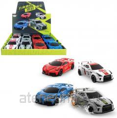 Wymiary: dł. auta 6 cm., materiał: plastik, napęd: pull back, 4 wzory: betoniarka, koparka, dźwig, wywrotka, ruchome elementy. Pozostałe informacje: wym. auta: 6 x 4,5 x 5 cm., wym. opakowania: 23 x 27 x 5 cm., 18M+
