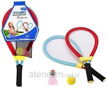 W zestawie: 2 rakietki z miękką siatką 28 X 62 cm., piłeczka 6 cm., lotka 7 x 8,5 cm., wym. opk: 29,5 x 63 x 9 cm., 6+