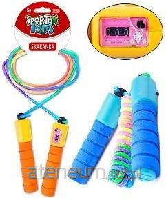Sznurek pleciony, nylonowy, grubość 7 mm, długość skakanki 2,2 m, rączki piankowe, z licznikiem, 2 kolory, 5+