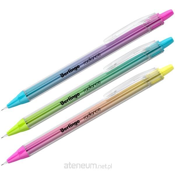 Ołówek automatyczny z serii Berlingo "Radiance" z neonowym gradientem. Oryginalny projekt przezroczystego korpusu zewnętrznego i wnętrza ze wzorem przyciąga dodatkową uwagę. Grafit o najpopularniejszej średnicy 0,5 mm. Ołówek posiada wbudowaną gumkę.