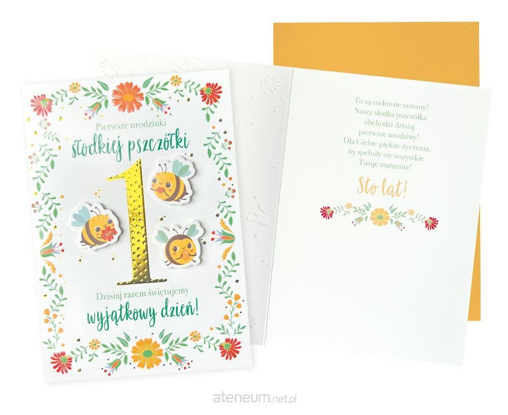Kartka B6 z ozdobnej serii Dream Cards na 1 urodziny - nieduża, ale robi wrażenie dzięki atrakcyjnej kolorystyce i ciekawym zdobieniom.