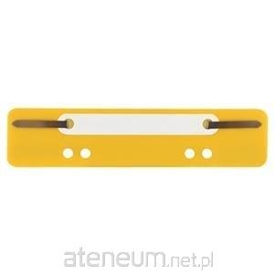 Wąsy do skoroszytów MemoBe. Długość 15 cm i szerokość 3,4 cm. Elementy z mechanizmem skoroszytowym, z metalową taśmą mocującą. Posiadają dziurowanie o rozstawie oczek 6-8 cm do włożenia do segregatora. Zestaw zawiera 25 sztuk w żółtym kolorze.