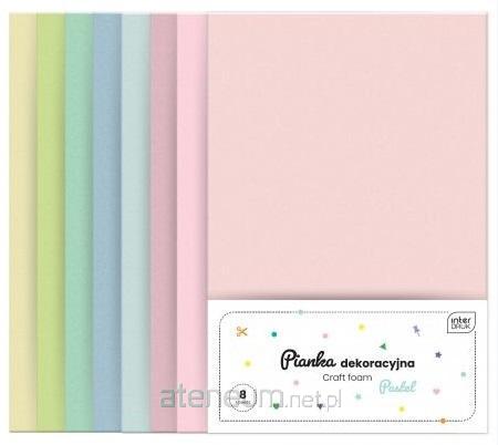 Opakowanie zawiera 8 arkuszy pianek w rozmiarze A4 w pastelowych kolorach.