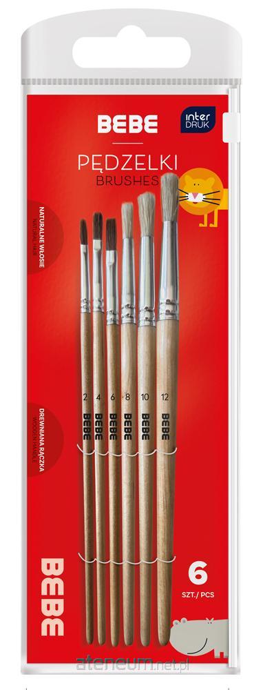 Zestaw 6 pędzelków o różnych szerokościach i kształtach końcówek. Naturalne włosie
