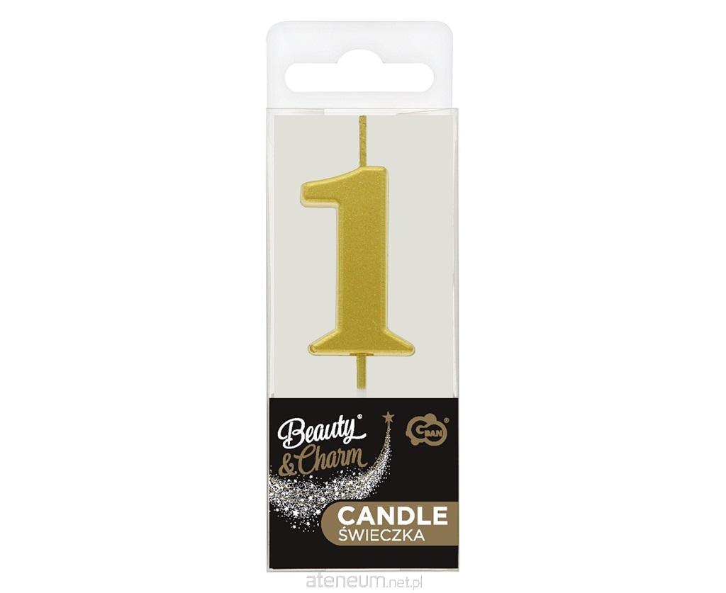 Świeczka cyferka 1 Beauty&Charm metalik złota 8cm