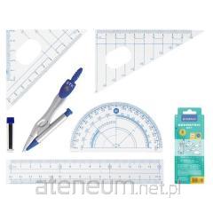 4 elementy: linijka 15 cm, 2 ekierki, kątomierz