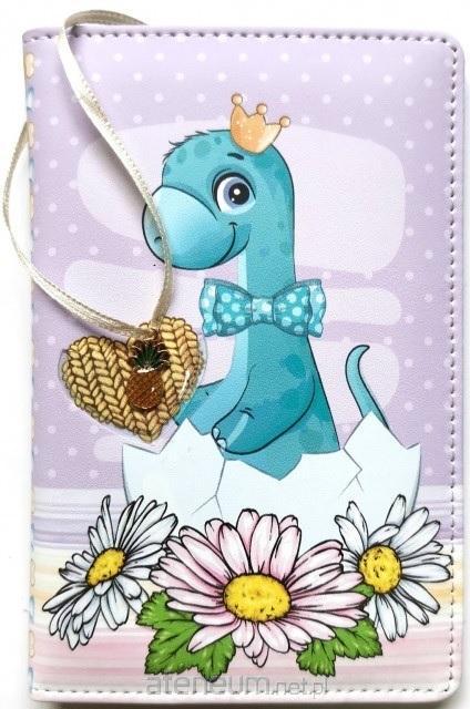 Notatnik dziecięcy A6 Dinozaur 64 kartki gładki TW. Notatnik posiada zakładkę, która zakończona jest metalową ozdobą.