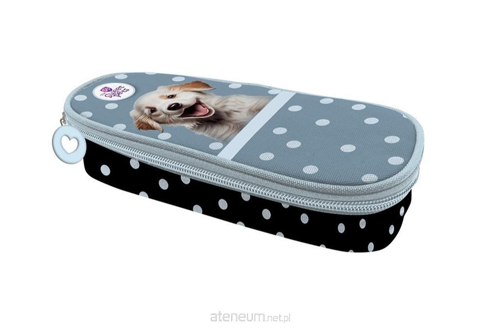 Owalny piórnik szkolny z klapką to niezbędny przedmiot uczniów. Wewnątrz na klapce znajdują się gumowe uchwyty na przybory do pisania oraz skrzydło, na którym jest kieszonka z siateczki zamykana zamkiem błyskawicznym i kolejne gumowe uchwyty. Komora główna jest pojemna, korpus dodatkowo usztywniany. Na piórniku znajduje się motyw z serii The Sweet Pets z psem. Duży piórnik z organizerem oprócz najważniejszych przyborów szkolnych, pomieści także m. in. pomadkę ochronną, chusteczki czy mały krem do rąk. Dzięki ruchomej przekładce, można oddzielić produkty kosmetyczne od szkolnych .Wyróżnia się na tle konkurencji tym, że dłuższy.