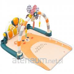 W zestawie jest 6 zabawek do dowolnego rozmieszczenia, w tym szeleszczący tygrysek, grzechotka-papużka, motylkowa minikaruzelka, gryzaczek listek bez bisfenolu A, lustereczko do poznawania swojej buzi oraz leniwiec z muzyką i światełkami. Matę do zabawy i poduszeczkę pod brzuszek można prać w pralce (po usunięciu łuków i zabawek)