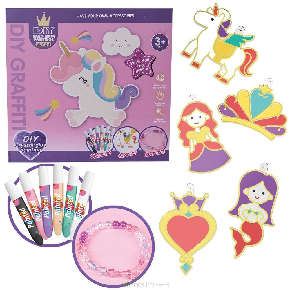 Zestaw kreatywny - KSIĘŻNICZKI Możliwość stworzenia kolorowych księżniczek i jednorożców, które potem mogą być ozdobą plecaka, piórnika czy biżuterią. W zestawie 6 kolorów żelów, formy, koraliki Wymiary opakowania: 24.5 x 3.5 x 23 cm
