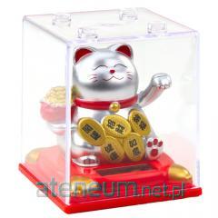 Chiński kot szczęścia w gablocie srebrny