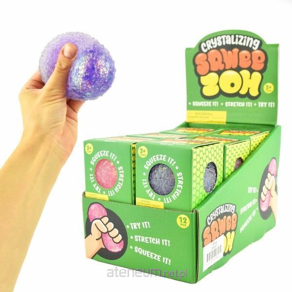 W display'u znajdują się 4 rodzaje gniotków z brokatem: niebieski, zielony, fioletowy, różowy (po 3 szt) o średnicy 7.3 cm. Gniotki są wysokiej jakości, wykonane z dbałością o szczegóły. Są odpowiedniej wielkości do dłoni dziecka. Odporne na mocne ściskanie i ugniatanie. Gniotki te, są wykorzystywane w terapii sensorycznej. Mają działanie uspokajające i odstresowujące. Są również świetnym narzędziem w terapii ręki, świetnie rozwijają zmysł dotyku oraz wpływają na rozwój małej motoryki.