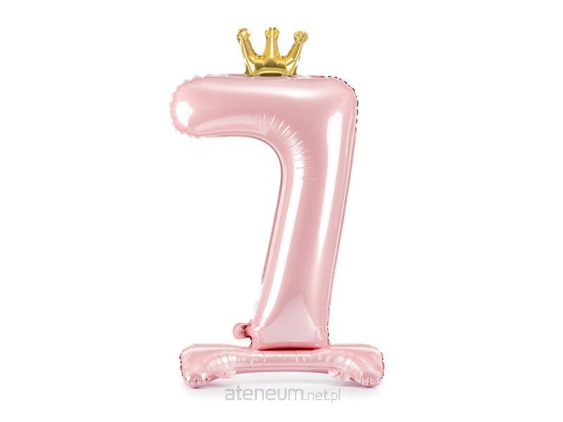 Stojący, metalizowany balon foliowy w kolorze jasnoróżowym z koroną w kolorze złotym, rozmiar przed napompowaniem 103 cm (40.5''), rozmiar po napompowaniu 84 cm (33''). Do napompowania powietrzem.