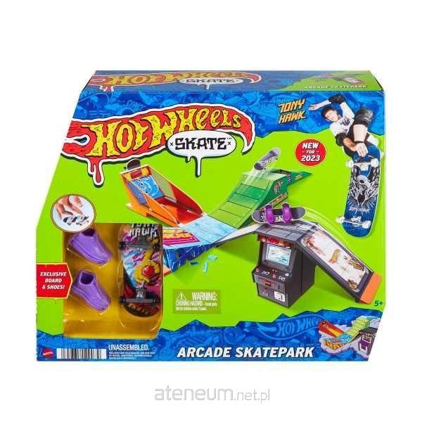 Popisuj się świetnymi trickami na Skateparku Hot Wheels Skate. Rampy inspirowane automatami do gier można ustawiać w różnych konfiguracjach, aby cieszyć się dynamiczną, kreatywną zabawą. W zestawie jest deskorolka do jazdy palcami zaprojektowana we współpracy z legendą skateboardingu, Tonym Hawkiem, oraz para zdejmowanych butów deskorolkowych, które ułatwiają nowicjuszom wyczucie deski. Kolory i elementy dekoracyjne mogą się różnić.