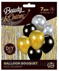 Balony Beauty&Charm bukiet złoto-czar. 30cm 7szt