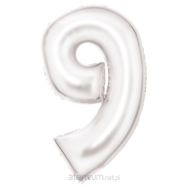 Balon foliowy cyfra 9 satynowy biały zapakowany 86 cm
