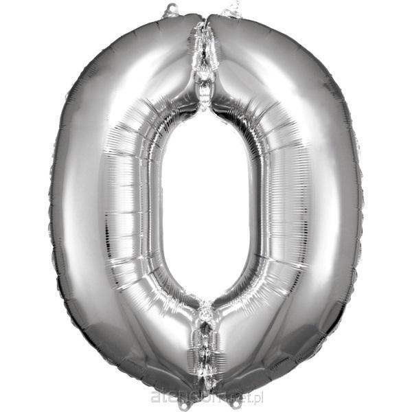 balon foliowy cyfra 0 srebrny zapakowany 70 cm x 86 cm