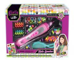 Kreda Do Malowania Włosów Pasemka Kolorowe Prostownica Akcesoria Kilkuletnie dziewczynki już od najmłodszych lat starają się upiększać za pomocą dodatków do ubrań, gadżetów, ozdabiania paznokci lub włosów. Zestaw rozwija zdolności manualne dziecka, wzbudza kreatywność, wyobraźnię oraz uczy dokładności i cierpliwości. Każda z nich chce być wyjątkowa i wyróżniać się na tle pozostałych. Zestaw do ozdabiania włosów, młoda dama będzie w stanie podkreślić swój wygląd i przy tym świetnie się bawić! Szybko i bezpiecznie możesz zmienić kolor włosów i wyróżnić się z tłumu! Co zawiera zestaw? - 3 aplikatory kredy: różowy, zielony, fioletowy - 6 gumek - prostownica - 3 gumki do zmazywania kredy - spinka kokarda - grzebień - lusterko - oryginalne opakowanie Wybieramy kolor, nakładamy na włosy i gotowe! Aby pokolorować pasma, wystarczy umieścić płytkę z kredą w prostownicy, zacisnąć i powoli rozprowadzić po włosach. Farbki rozprowadzają się równo, dlatego są bardzo wydajne i efektowne! Stworzysz przepiękne kolorowe pasemka lub fryzury, przy pomocy gumek do włosów. Całkowicie bezpieczne dla włosów, osadzają się na powierzchni. Bez problemu można je zmyć podczas kąpieli. Wymiary prostownicy: 18 cm x 5 cm x 4 cm Wymiary opakowania: 29 cm x 24 cm x 8 cm Posiada certyfikat CE, ponadto jest zgodny z normą EN71. Przeznaczony dla dzieci powyżej 3 roku życia.
