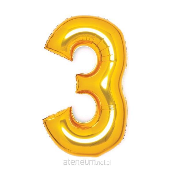 Balon foliowy cyfra 3 złota 50 cm x 66 cm