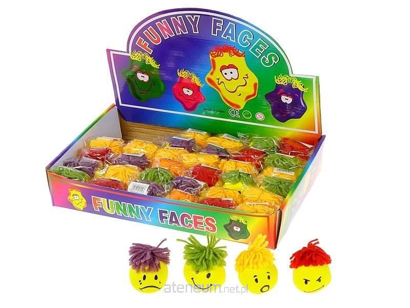 Gniotek buźka 6x5cm, z włosami z włóczki, opak 36szt; PPB