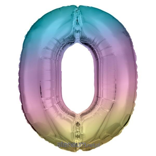 Balon foliowy cyfra 0 tęczowa pastel 70 cm x 86 cm
