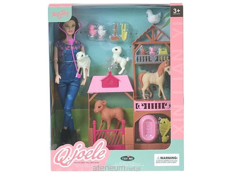 Lalka 29cm weterynarka, ze zwierzętami; 33x27x8cm, W/B