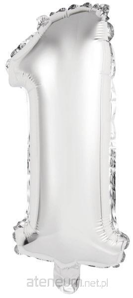 Mini cyfra 1 srebrny balon foliowy spakowany 19,5 cm x 40 cm
