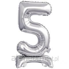 Balon foliowy mini cyfra 5 na stojaku srebrna