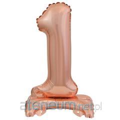 Balon foliowy mini cyfra 1 na stojaku różowe złoto
