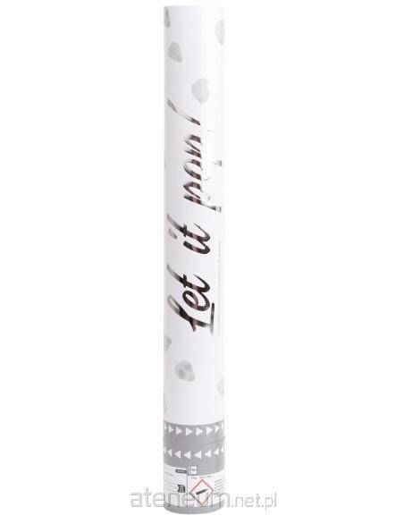 Armatka konfetti różowe płatki białe papier 40 cm