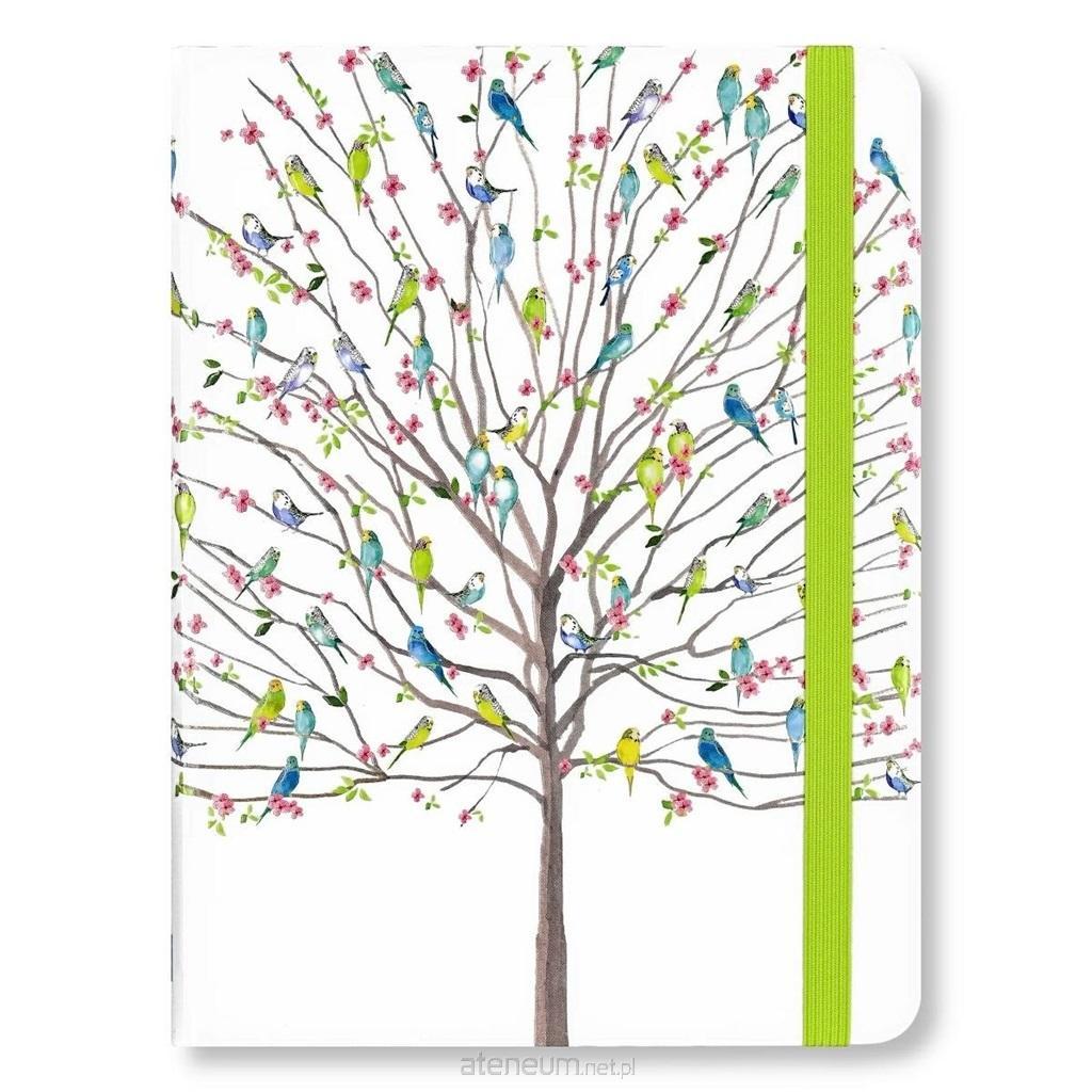 Średni notatnik firmy Peter Pauper Press Papugowe drzewo (Tree of Budgies). Każdy notes tej marki jest wyjątkowym dziełem sztuki. Bogactwo wzorów i kolorów pozwala wybrać ten idealny. Notes idealnie nadaje się na prezent. Okładka przedstawia drzewo pełne kolorowych papużek.