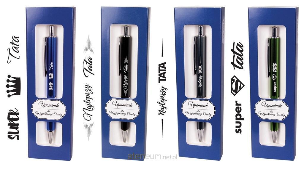 Metalowy, automatyczny długopis CARLOS z nadrukiem jako prezent na różne okazje dla TATY. Zapakowany w prezentowe etui. Występuje w mixie kolorystycznym z kilkoma wzorami nadruku. Wkład niebieski wymienny.