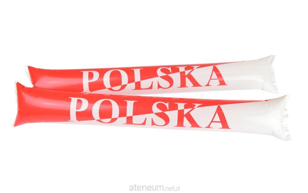 Pałeczki do nadmuchania biało-czerwone z różnymi grafikami, 2 sztuki w zestawie. Wymiary sztuki: 10x58cm. Różne wzory.