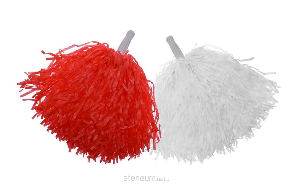 Pompony kibica (biały + czerwony) Długość rączki: 8 cm. Długość frędzli: 25 cm.