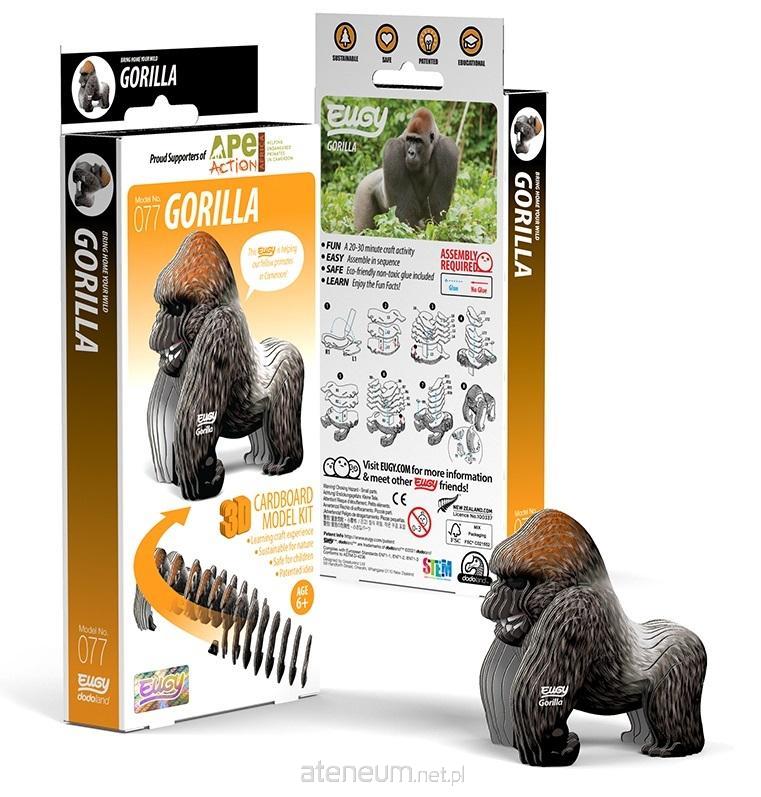 Eugy zaprojektowane w Nowej Zelandii są wykonane z przyjaznego dla środowiska kartonu pochodzącego z recyklingu i farby na bazie ryżu. Zestaw zawiera ponumerowane elementy układanki, nietoksyczny klej oraz instrukcję do zbudowania goryla. Zbierz całą serię zwierząt, ptaków, dinozaurów i wiele innych. Dla dzieci w wieku 6 lat+.